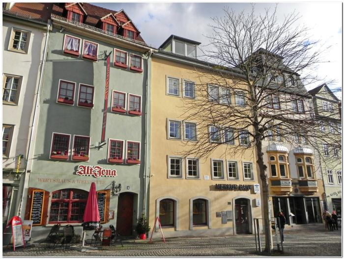 Наличие важнейших объектов военной промышленности не оставляло Йене шансов, чтобы выйти сухой из воды, то бишь из Второй мировой войны. Город пострадал от бомбардировок очень сильно. К тому же, хоть и не сразу, но всё же попал в зону советской оккупации, так что его дальнейшая судьба была незавидна. Справедливости ради стоит отметить, что частично архитектурный ансамбль города был восстановлен. И пример тому – северная часть Eichplatz. Здесь выстроились в длинный строй «красавчики» разных эпох.