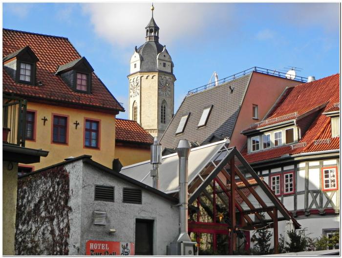 Но самым фотогеничным в Йене оказался храм св. Михаила, потому как именно он, будучи одним из немногих сооружений, оживлявших Eichplatz, постоянно попадал в кадр.