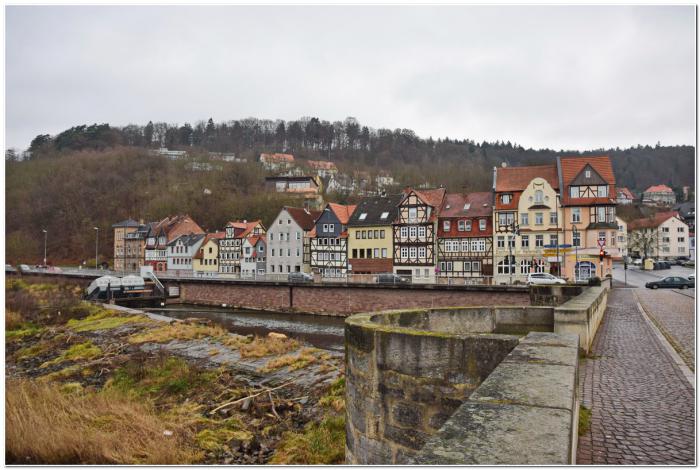 Впрочем, не только это. Ханн.Мюнден крайне интересен с точки зрения географического положения. Его старый город находится на вершине мыса, образованного сливающимися реками Верра и Фульда.