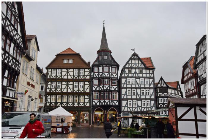 Программа-минимум выполнена, теперь можно спокойно побродить по городу. Благо, что снег прекратился, и серьёзных возражений никто не высказывает. Как и положено городу, находящемуся на «Deutsche Fachwerkstraße», главный объект интереса в Ханн. Мюндене – это фахверковые сооружения.