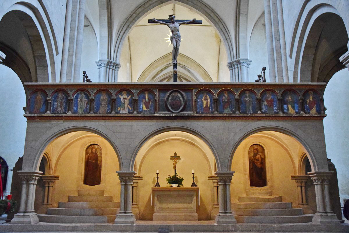 Особенностью собора, помимо прочего, является то, что в нём сразу два клироса. По сути – это две церкви. А вот уникальность заключается в том, что в храме сохранились оба леттнера – перегородки, отделявшие знать от простолюдинов. После того, как в 17 веке римский Папа объявил о «равноправии», такое положение вещей почти нигде не сохранилось. Подтверждением этих слов является тот факт, что восточный позднероманский леттнер собора Петра и Павла, датированный 1230 годом, является самым старым в Германии.