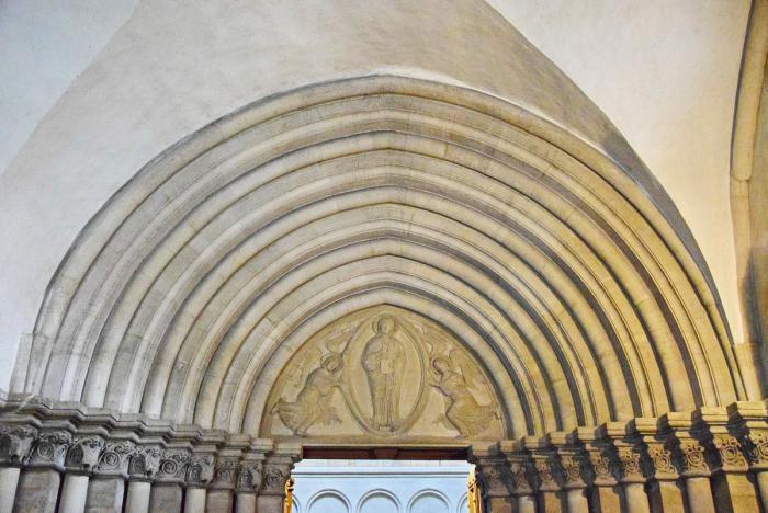Прочесав внутренний дворик, мы устремляемся внутрь, но тормозим у главного портала, которому почти 800 лет. Здесь изображено вознесение Христа, что, как говорят специалисты, в иконографике встречается крайне редко.