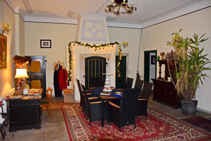 Идея провести последний вечер в Германии в романтической обстановке настолько овладела моим сознанием, что я даже был готов выйти за рамки нашего типового бюджета. К счастью, это не понадобилось, поскольку на одном из агрегаторов мне удалось выловить дисконтное предложение. К слову, большинство номеров в этом отеле оборудовано кухней, так что и здесь мы избежали дополнительных трат на питание. В своё время замок Тристевиц выкупила семья нынешних владельцев – очень приятная интеллигентная пара.