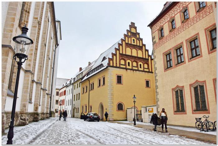 Бюргерские дома на площади – наглядная иллюстрация всех основных архитектурных стилей. А местная ратуша является старейшей в Саксонии.