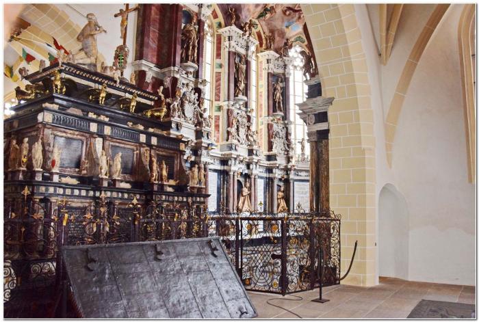 За алтарём находится усыпальница курфюрстов династии Веттинов.