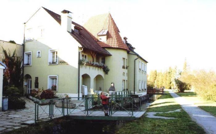 пенсион “Ve Vezi” в историческом предместье Латран. Быстро доезжаем до него, я иду внутрь настоящей средневековой готической башни и, о счастье!, хозяйка заведения на месте. Трёхместный номер с завтраком – 1400 Крон. Машину можно ставить на лужайке под стенами башни. Место изумительное: с одной стороны небольшой старинный пивзавод, с другой – река.