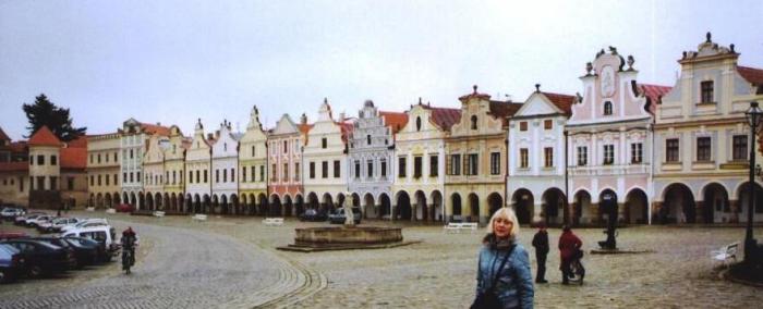 Проснулись рано, ещё не было семи часов. За окном туманно и мрачно, что не радует. Завтрак – шведский стол. В 9.00 вышли на улицу. Зябко и ветрено. Настроение немного испортилось, т.к. показалось, что наше везение с погодой закончилось. От гостиницы до Старого города буквально несколько минут ходу. Перейдя мост через один из двух прудов, огибающих исторический центр, и пройдя через Малые ворота замка, оказываемся в моей любимой средневековой атмосфере. Наверное, самое красивое место города – это площадь Захариаша из Градеца. Длинная и узкая, окружённая ренессансными, окрашенными в нежные тона, домами с аркадами, она удивительным образом расширяет пространство. В связи с этим, совсем небольшой Старый город кажется каким-то бесконечным.
