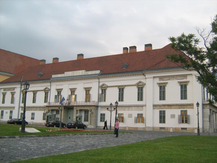 От площади Святой Троицы по Казначейской улице (Тárnok) вышли на площадь Парадов. Далее по Театральной (Szinhaz) улице мимо дворца Шандора