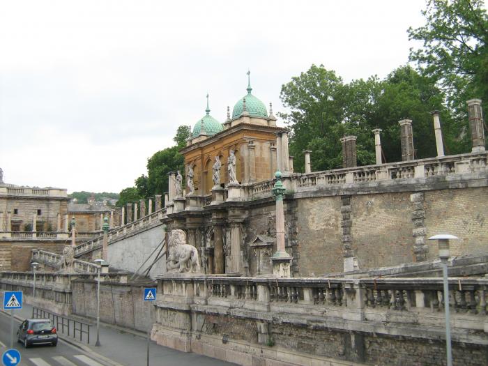 Королевского Дворца. Слева от ворот верхняя станция фуникулёра и площадка, с которой открывается великолепный вид на старейший мост города, который называют Цепной или Львиный.