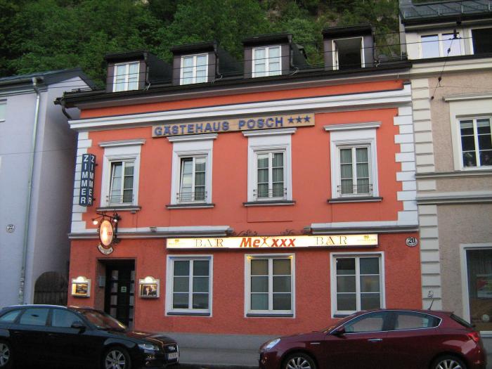 Вечером пошли ужинать в примеченный днём ресторан недалеко от отеля. И тут чуть не произошёл курьёзный случай. Когда подошли к дверям заведения я обратил внимание на пиктограмму на входных дверях о разрешении в помещении курить. В Евросоюзе такое встретишь не часто. Потом рассмотрел само название, а там три «икса» и мужик в «раскорячку» стоит.