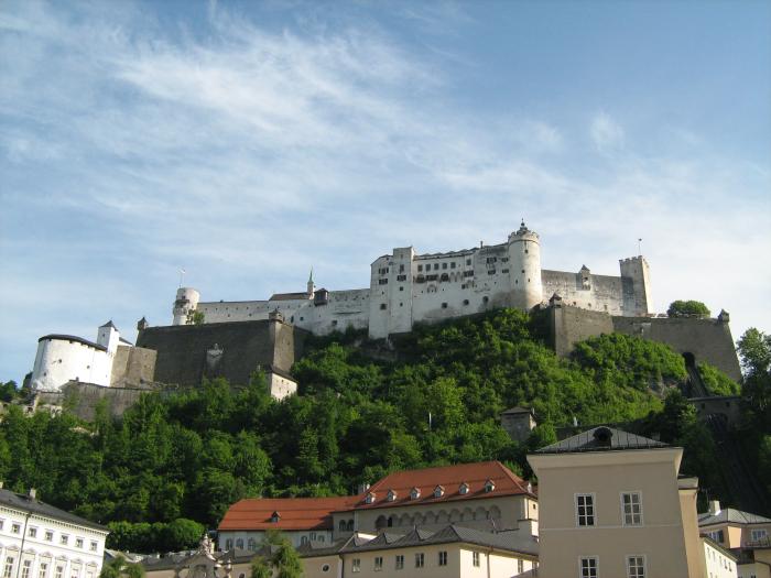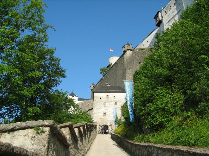 то попадаем в начало Фестунгассе. Здесь находится станция фуникулёрной дороги, с помощью которой поднимаемся в крепость Фестунг Хоэнзальцбург, основанную в 1077 году.