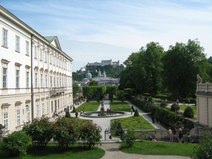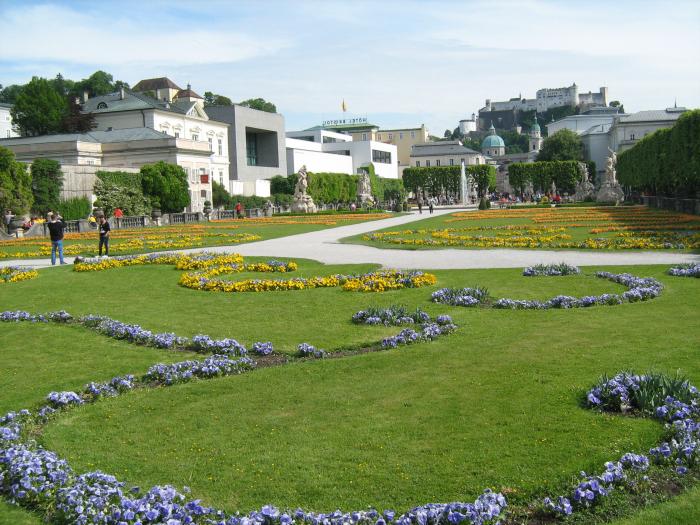 Слева дворец Мирабель, а прямо отличный вид на крепость Фестунг Хоэнзальцбург. Проходим через парк дворца.