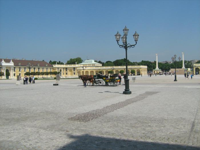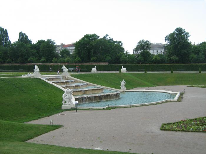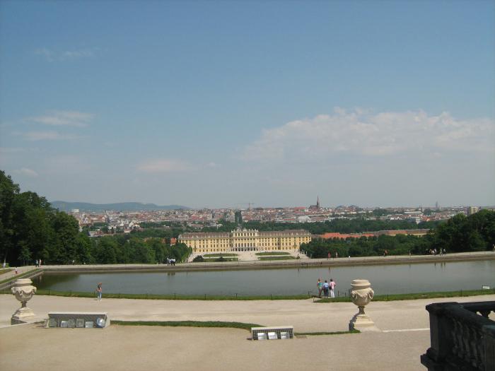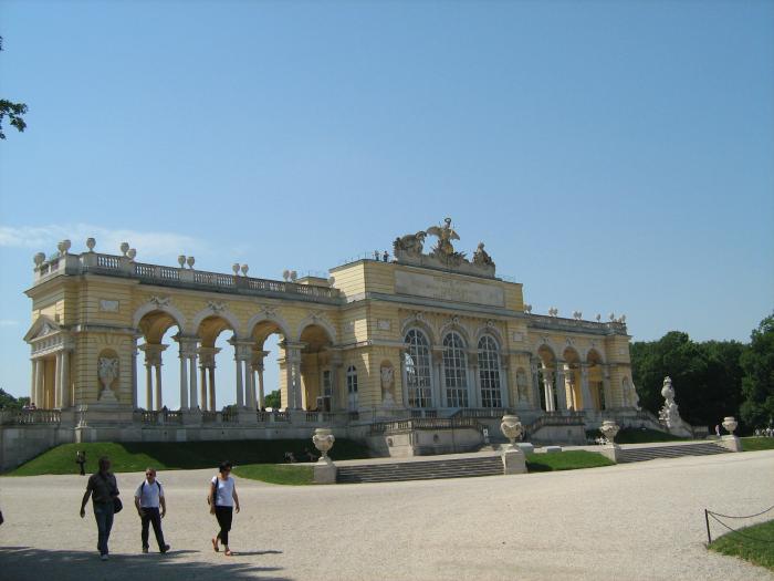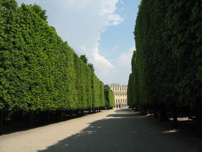 Итак: площадь перед дворцом, парк а вот так делают стены из деревьев. Беседка Глориетт вид с неё на дворец и Вену.