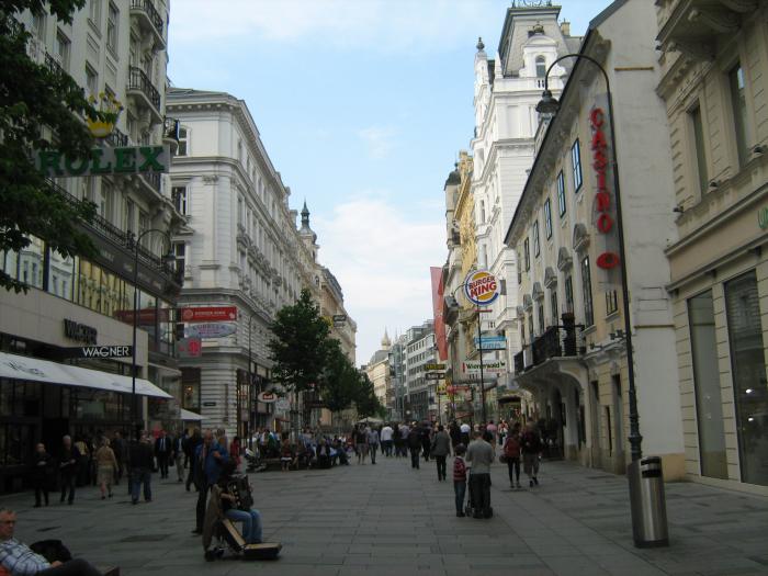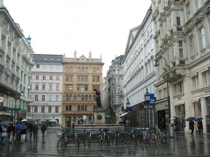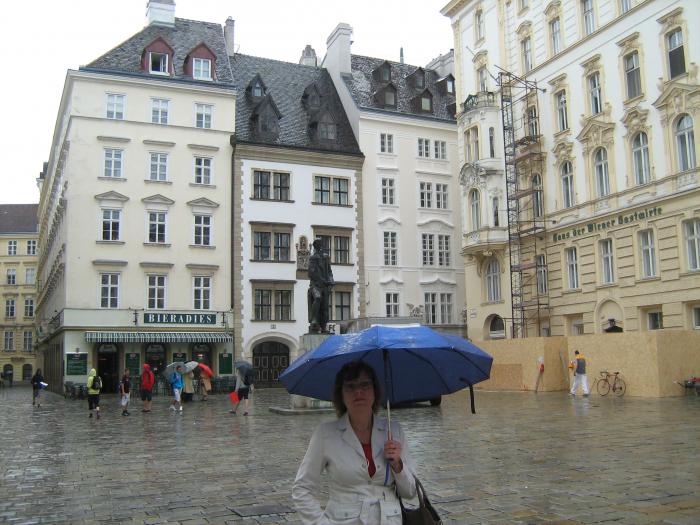 Где она очень удивлённо смотрит на супруга, в одной руке у неё «держава», а в другой меч. «Типа: если чё – я могу и врезать». Вернулись на Кернтнерштрассе и по ней мимо Собора Св.Стефана.