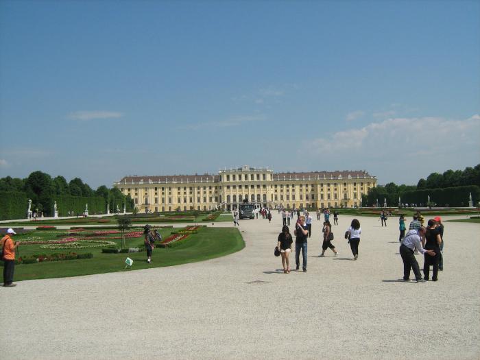 На Шведенплатц погрузились в наш экскурсионный автобус. При входе предъявили билеты, купленные вчера. И по Рингштрассе поехали к Оперному театру, чтобы пересесть на другой маршрут. Возле Оперы пересели на зелёный маршрут и через 20 минут мы возле дворца Шёнбрунн. Посещение парка бесплатно, а во дворец мы не пошли, т.к. интерьеры практически всех дворцов 18-19 веков очень похожи «мода такая тогда была». Конечно, если есть «жемчужины» такого порядка как «Янтарная комната» в Екатерининском дворце в Пушкине, то тогда конечно имеет смысл посетить дворец. Сугубо мой личный взгляд на это.