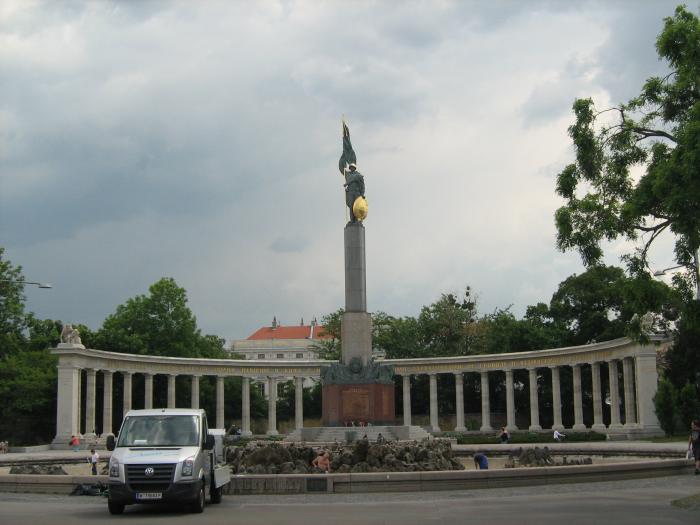 Для меня это был волнующий момент, т.к. мой дед закончил войну в 1945 году в Вене. За памятником виднеется крыша дворца князя Карла Шварценбергского. Если пересечь площадь, оставляя этот памятник слева, то можно выйти на Гуссхаусштрассе. Далее через квартал повернуть направо на Аргентиньештрассе вы попадёте на Кралсплатц. Здесь красивейшая церковь Карлскирхе.
