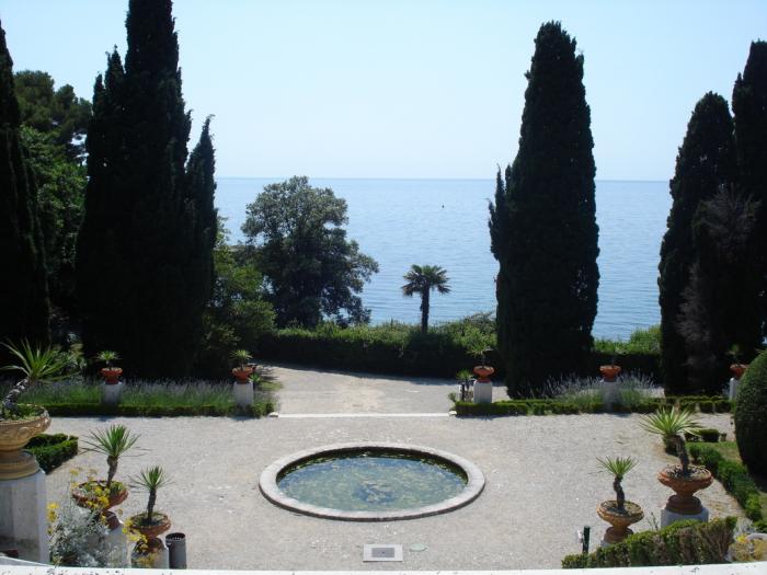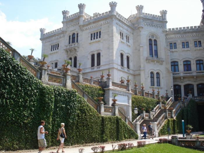 Мы побродили по центу, а потом отправились в замок Мирамаре. Замок стоит на вершине горы, у подножья которой плещет глубокое синее море. Замок был построен для герцога Максимилиана и его жены Шарлоты. Брат императора Франца Иосифа, Максимилиан был коронован как император Мексики в 1864 г. Три года спустя, однако, он был свергнут и казнен республиканской армией. Его жена сошла с ума. В летние месяцы небольшой спектакль об этой трагической истории ежедневно разыгрывают перед замком.