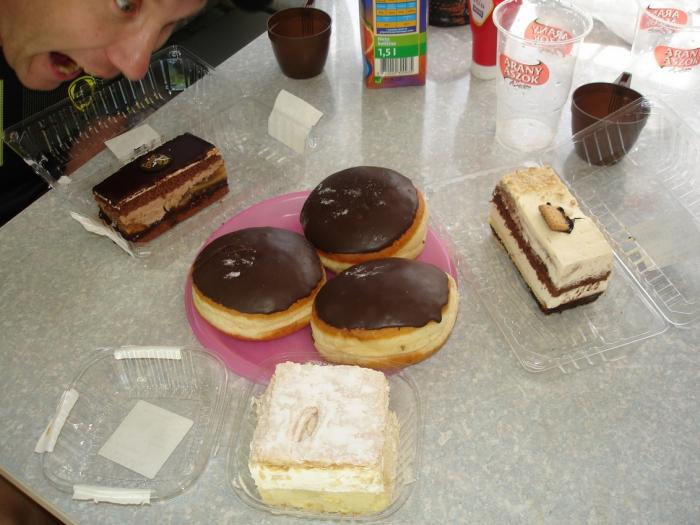 А каких только вкусностей мы не ели!!! Вот, например, пирожные, и булочки с Баварским кремом, которые мы брали к завтраку каждый день.