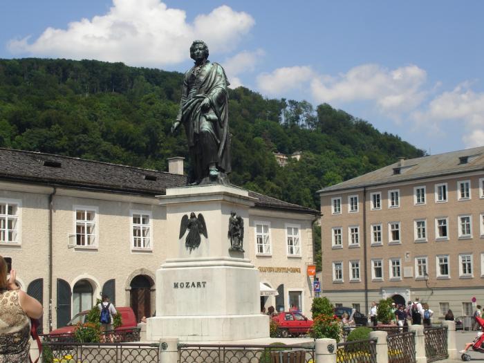 Ну и, конечно, на площади памятник самому Моцарту.
