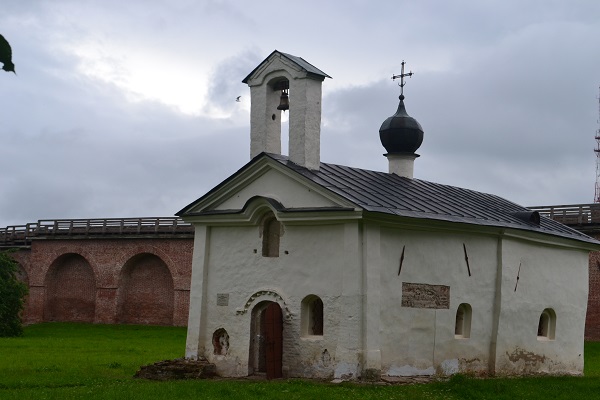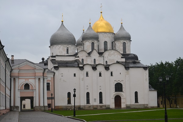 Но и без рассказов гидов было занимательно и интересно бродить по тенистым дорожкам и аллеям, посмотреть на древние фрески в маленькой церкви Андрея Стратилата, учтиво помолчать в прохладе Софийского собора, подняться на выгнутую спину моста через реку Волхов, с которого открывается восхитительная панорама на кремлевский ансамбль с белоснежной звонницей на переднем плане. И все это под торжественные звуки фортепианного концерта, льющегося из широко открытого окна духовного училища.