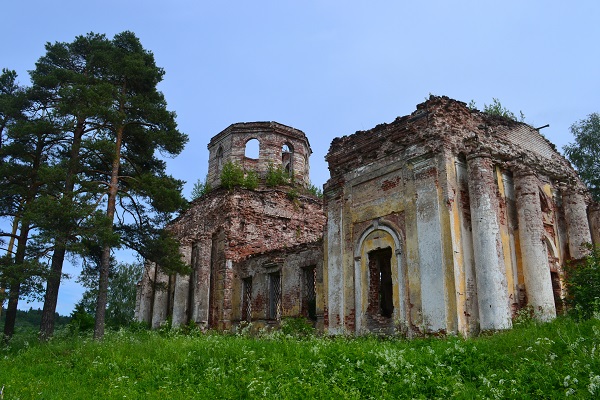 На обратном пути к московской трассе, в поселке Короцко, осмотрели Покровскую церковь, построенную в начале XIX века. Сейчас руины представляют собой печальную картину. На стенах и куполах её частично сохранились фрески росписи. Добровольцы пытаются аккуратно очищать их от грязи и штукатурки, но специалистов-реставраторов катастрофически не хватает. Судя по развалинам симпатичная церковь была когда-то.