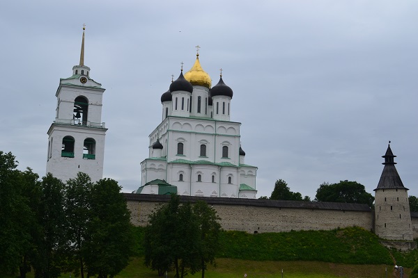 Восхищение у нас вызвал лишь величавый Троицкий собор, как бы парящий в небесах вместе с облаками над исторической Вечевой площадью — местом народных собраний, на которых решались как простые, так и судьбоносные для древнего Пскова вопросы.