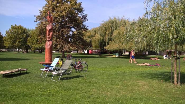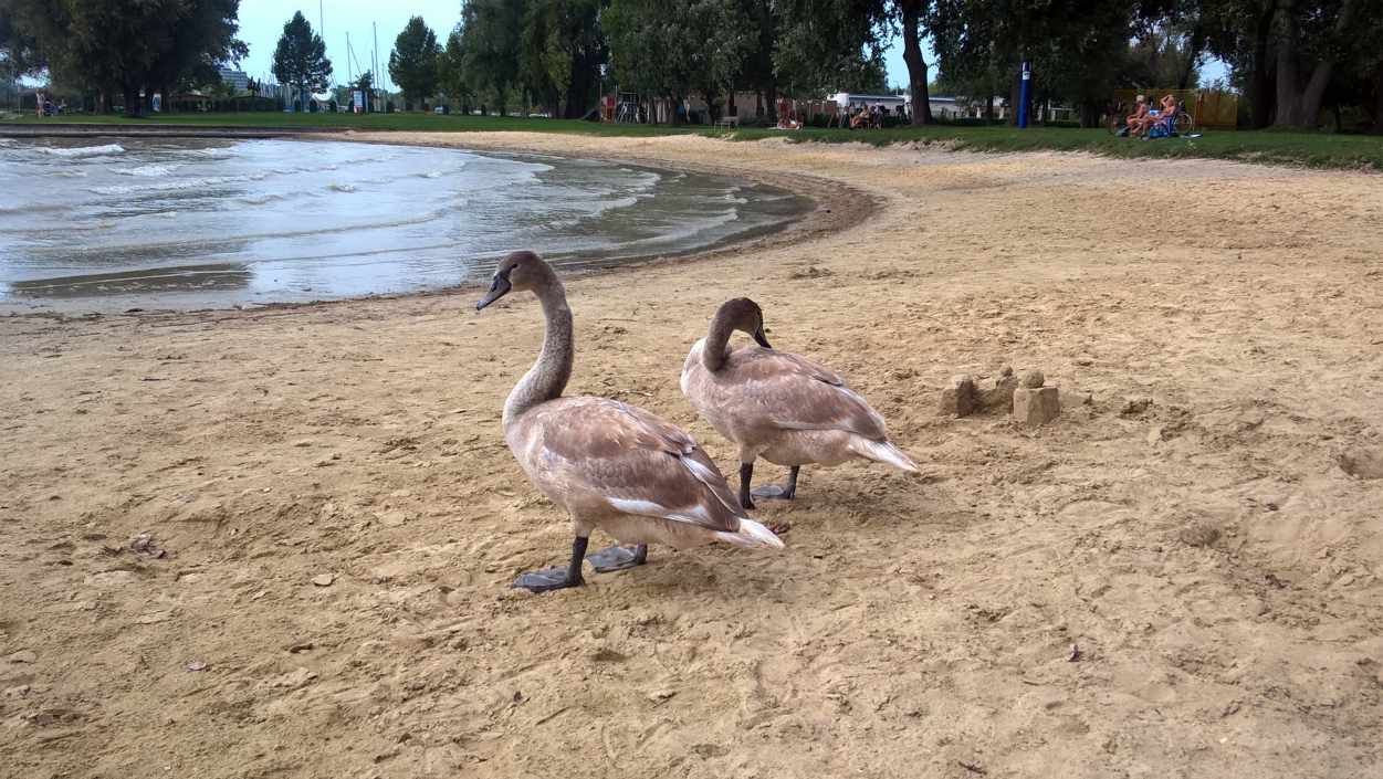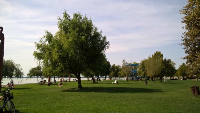 Фактически каждый день мы отдыхали и купались на Балатоне и погода этому способствовала, за все время нашего пребывания, температура днем редко опускалась ниже 24 градусов, а вот водичка в озере была градусов 18-19. Но так как мы люди северные, нас этим не испугать и несколько раз моя супруга своим личным примером вдохновляла других, не очень смелых и не очень решительных туристов из Европы залезть в воду (приношу извинения за столь плохое фото, но другого к сожалению нет)