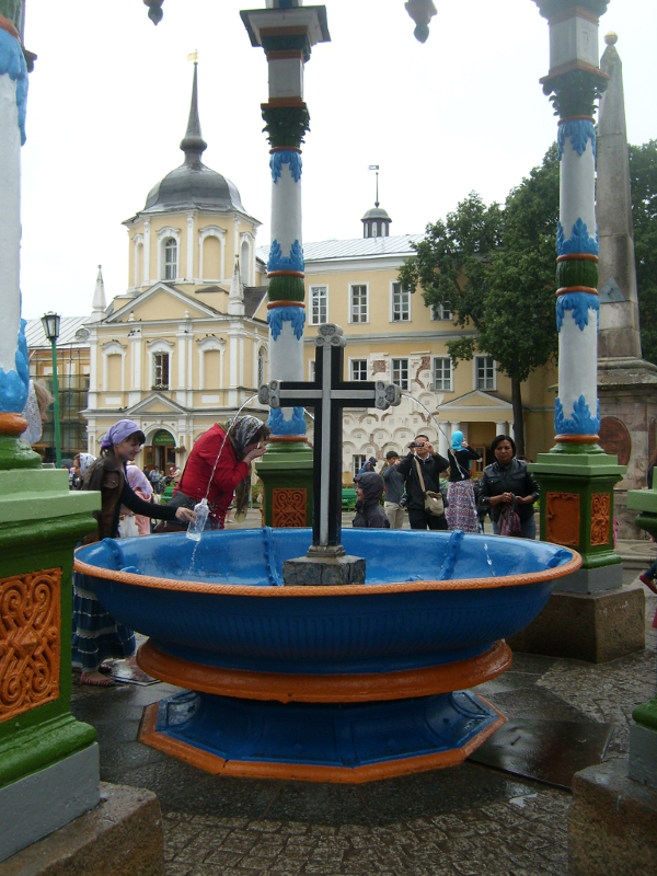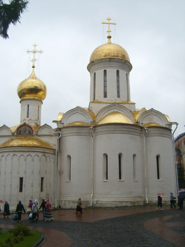 В самой Лавре, несмотря на дождь, было много экскурсионных групп со всего мира, много отечественных паломников и туристов, и очень много рабочих, так как в Лавре ведутся масштабные ремонтные работы к 700-летию св. Сергия Радонежского, которое будут отмечать в 2014 году (как я понял в мае). Кстати, все встреченные рабочие были русскими, в спецодежде и касках, не кричали и вели себя подобающе месту. После нашествия на наши стройки гостей из Средней Азии видеть такую картину было даже непривычно. Было такое ощущение, что для Лавры отобрали самых лучших по конкурсу.