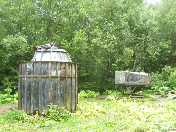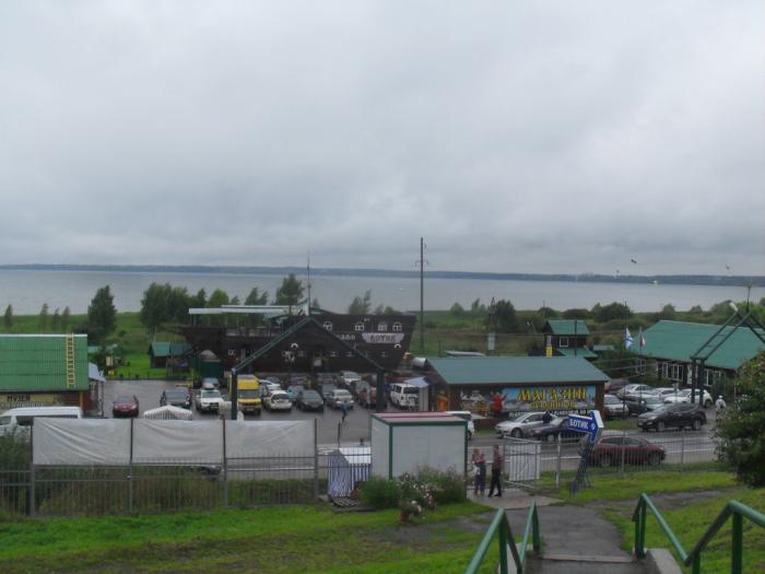 Примерно через 3 км, мы увидели слева, вдоль берега, несколько деревянных строений, кафе «Ботик» в форме остова корабля, около которого была стоянка, заполненная машинами, вереницу припаркованных вдоль дороги машин со свадебными лентами, а также пару экскурсионных автобусов. Справа возвышался холм с памятником Петру I и ведущей к нему лестницей. Из-за большого количества машин найти место для стоянки трудно, а из-за машин и автобусов, припаркованных вдоль дороги, трудно просто проехать мимо. Вход на территорию музея расположен около дороги, внизу холма. Стоимость входного билета 20 рублей. Для посещения зданий необходимо покупать билеты дополнительно. Мы не стали, так как отзывы об экспозиции неоднозначные и время поджимало. Насладились видом с холма на озеро, прошлись по территории. В целом неплохое место, как мы поняли, очень популярное у местных свадебных фотографов. В дальнем (от входа) конце территории к своему удивлению обнаружили крылатую ракету, турель с многоствольным пулеметом (как в «Терминаторе»), противовоздушную башню с пушкой, по виду 60-70 годов 20 века.