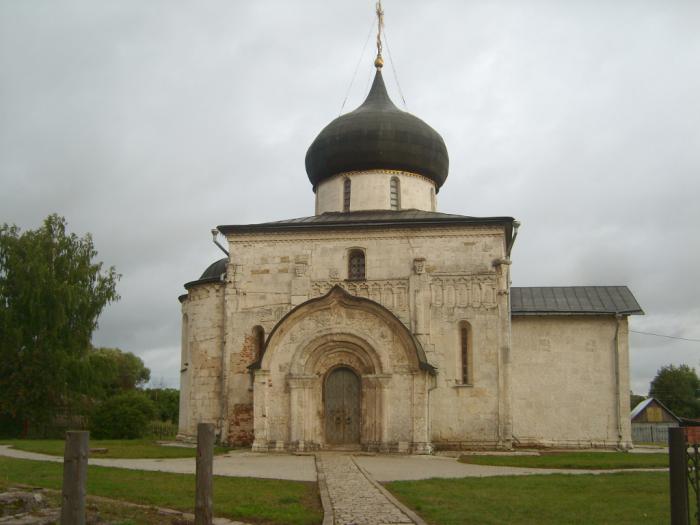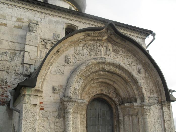 Выйдя из монастыря мы пошли по улице дальше. Прошли мимо районного отдела полиции, завернули за реставрируемый собор (по-моему Троицкий) и вышли к главной достопримечательности — белокаменному Георгиевскому собору, построенному в 1230-1234 г.г. Собор смотрится строго, чувствуется, что он был свидетелем многих исторических событий, что время оставило на нем свой отпечаток. Собор был перестроен после частичного обрушения в 15 веке, в связи с чем утратил свою первоначальную высоту и часть украшений, однако все равно производит впечатление. Нам особенно понравился рельеф наружных стен собора, представляющий собой сложный резной орнамент, который можно разглядывать часами.