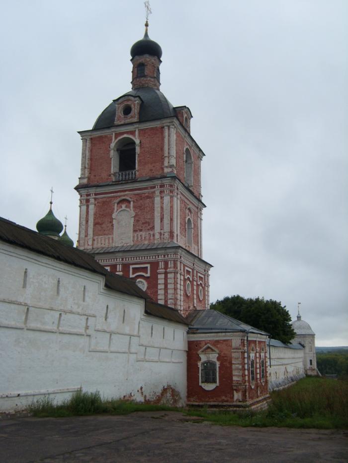 Потратив около часа на Ботик, мы сели в машину и вернулись в город. Подъехав к перекрестку с ул. Московской мы повернули направо, поднялись на холм и повернули направо к музею-заповеднику (Горицкому монастырю). Около монастыря хорошая парковка. Вход на территорию стоит 20 рублей. Как я понял, самое посещаемое место — колокольня (вход 80 рублей), с которой открывается вид на озеро и город. На нас сильное впечатление произвели окружающие монастырь стены, которые выглядят очень мощными и словно выдержали ни одну осаду.