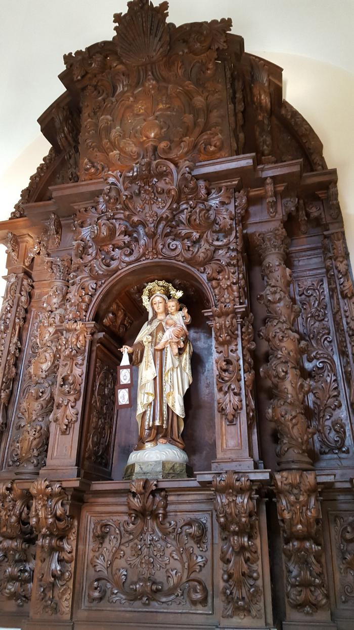 Я люблю посещать католические храмы. В них как-то особенно спокойно. Можно посидеть на лавочках в тишине, рассматривая внутреннее убранство. А вот Александре, в силу её возраста, уютнее находиться в тени зонтика какого-нибудь ресторанчика. Идём искать.