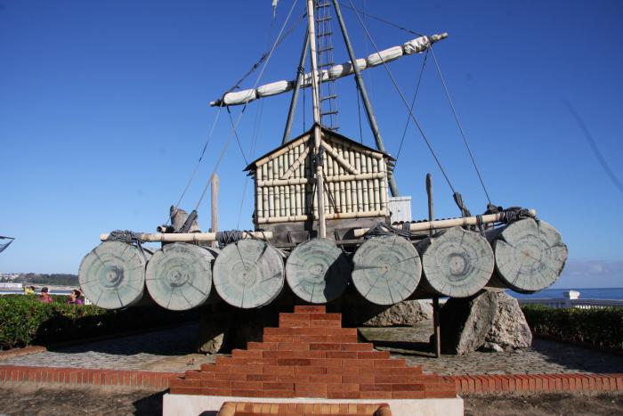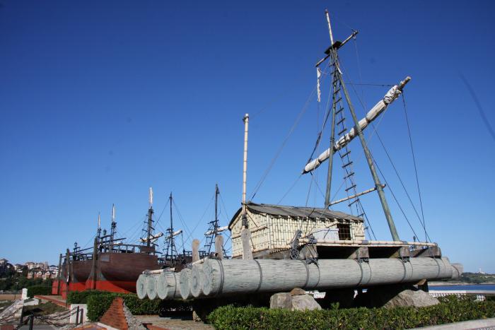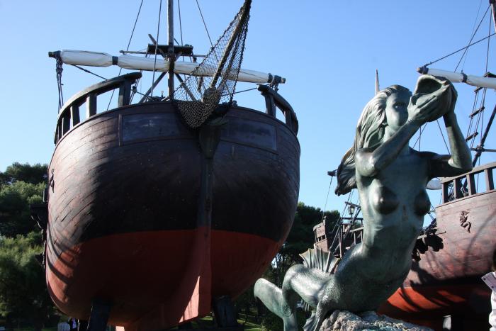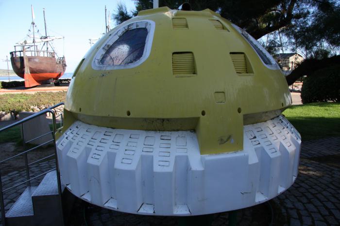 На берегу небольшая экспозиция плавательных средств. Можно трогать руками, но нельзя залезать наверх.