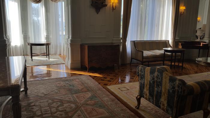 Дворец расположен на небольшом полуостровке, куда запускают только туристические автобусы и служебные автомобили. Отдыхающие местные жители тоже там прогуливаются и даже приторачивают гамаки в отдалённых местах. Маршрут обозначен пупырышками на плане.