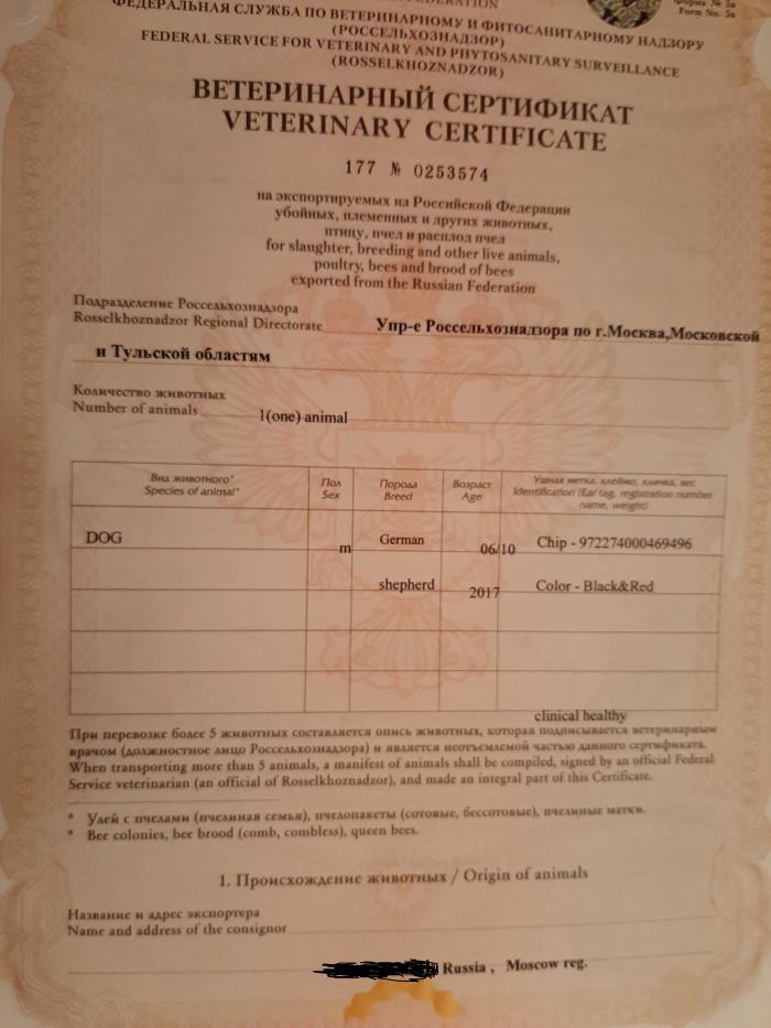 ОБМЕН СПРАВКИ НА ВЕТЕРИНАРНЫЙ СЕРТИФИКАТ.