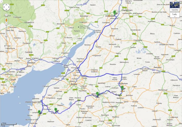 Схема передвижений по Сомерсету.