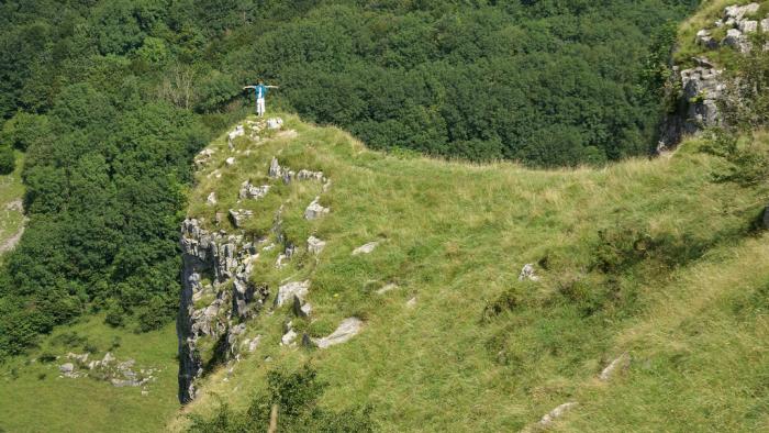 Cheddar Gorge я видел в одном из выпусков Top Gear, и когда появилась возможность, захотелось прокатиться по тому же маршруту. Только начать решили с пешей прогулки по вершинам. Объект оформлен чин-чинарем: фирменное название, буклеты, реклама. И денег соответственно берут: 13 фунтов за 1.5 часовую прогулку. Но все это похоже на развод, не ведитесь, как мы. Тропа по периметру ущелья бесплатна на законных основаниях. Чтобы убедиться, нам достаточно было дойти до конца и оглянуться — в обратном направлении указывает стрелка «public path». Это я к тому, что в UK с вас могут взять плату ни за что — вроде как сами согласились.