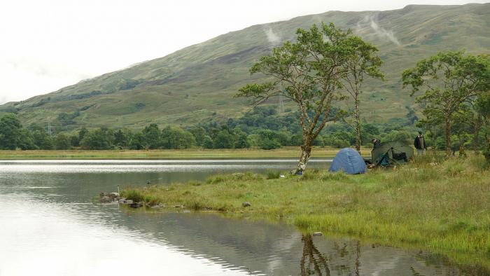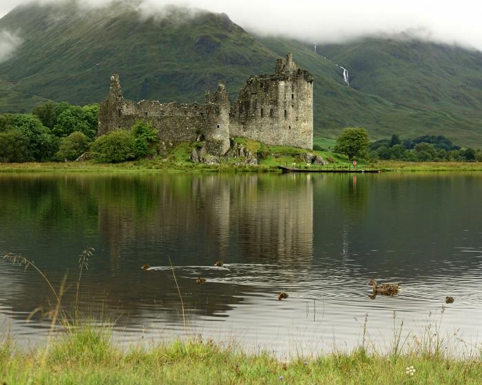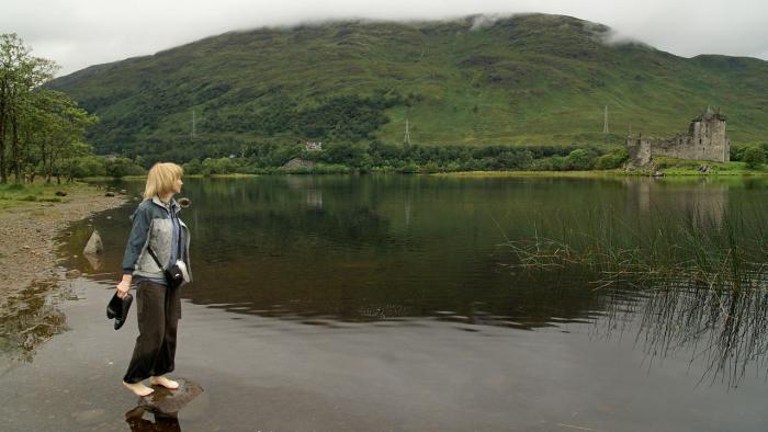 Очередную остановку делаем недалеко от развалин замка Kilchurn. На время осадки прекратились, но без резиновых сапог на улицу лучше не соваться. Эх, где наша не пропадала: разулись, пошли босиком. Трава теплая, жена только змей опасается.