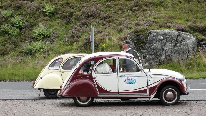 Караван ретро-Ситроенов с французскими номерами. Девчонки ищут попутный транспорт.