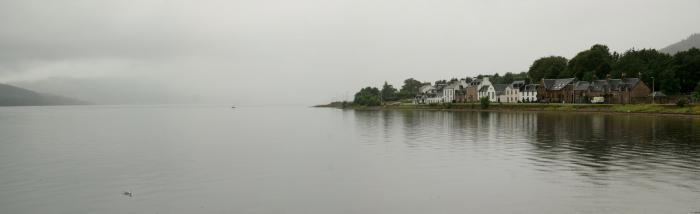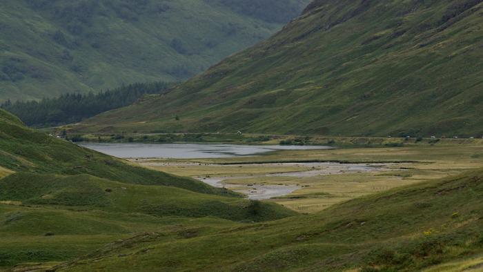После Inveraray населенные пункты практически прекратились. Изредка попадались одиночные постройки, в остальное же время путь проходил через пустые долины и невысокие перевалы. Под переменным дождем, мы подъезжали к очередному, зажатому между гор озеру, где сначала видели противоположный берег, а спустя некоторое время уже катились по нему, разглядывая то место, откуда приехали.