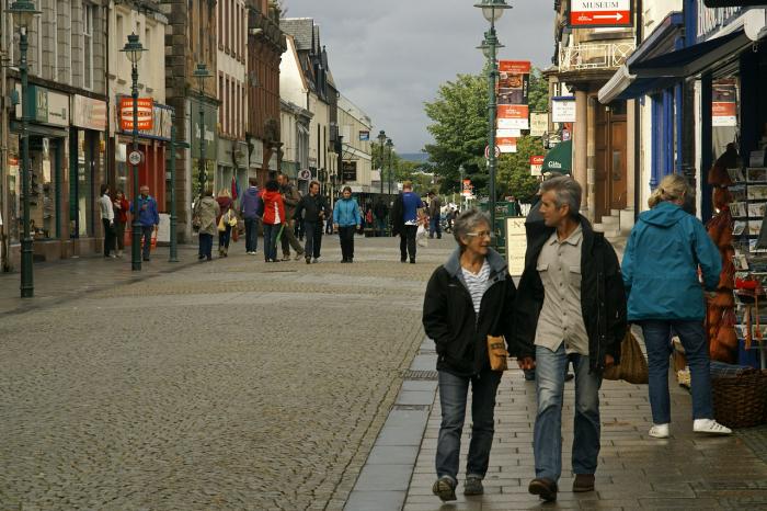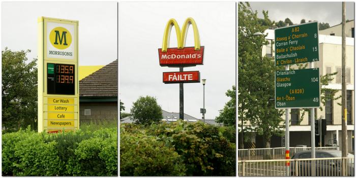 Вот тут дождь идет... … а здесь уже нет. Луч света на Loch Linnhe. Повсеместно встречаются дублирующие надписи на гэльском языке. Традиционная High Street. На это раз — пешеходная.