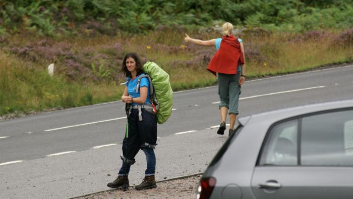 Студентки, направляются в молодежный лагерь в Glencoe Village, целый день лазали по горам. Та, что светленькая, приехала из Канады, а шатенка — из Франции. Её неродной английский облегчал общение, и мы смогли поговорить даже о прожорливом гнусе. По их словам, называется он , доставляет много неприятностей (проверено на своей шкуре).