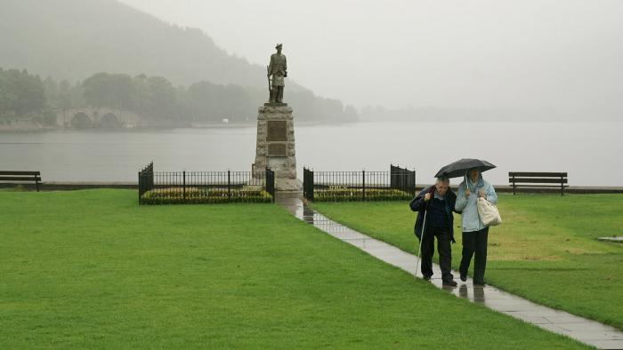 С утра идет проливной дождь. Прогноз погоды по BBC2 обещает в тех местах, куда мы направляемся, прояснения к полудню и полное благолепие к 14:00 (очень удобно, когда сводка на день дается в почасовой динамике). Поверив ему, отказываемся от завтрака в отеле, чтобы пораньше выехать в сторону Inveraray.