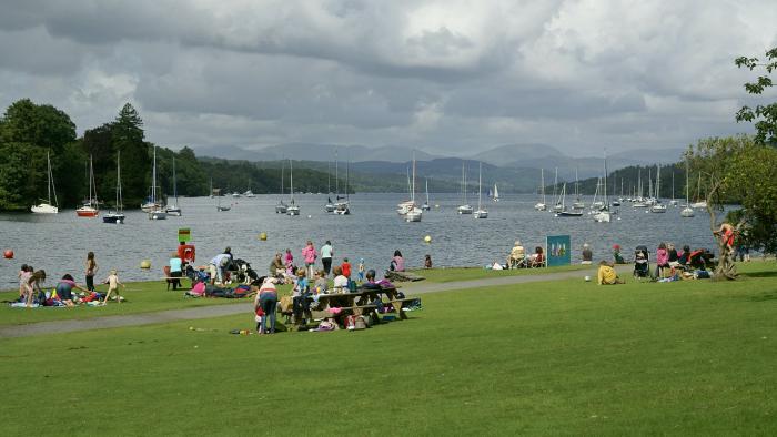 Путеводитель скромно напоминает, что это “сад поздней Викторианской эпохи с лужайками, рододендронами, дубами и соснами у южного берега Windermere”. Кто не знает — Уиндермир — крупнейшее озеро в Камбрии, вдоль него мы поедем после привала, а сейчас — для разнообразия — водные развлечения.