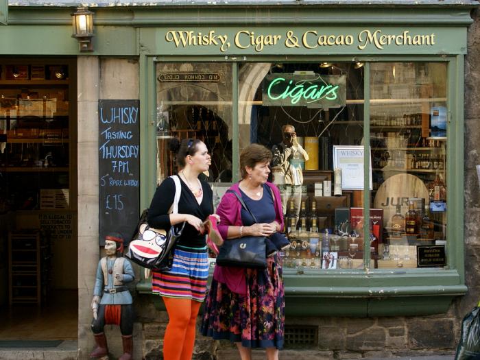 Завершилась прогулка по «золотой миле» вблизи Эдинбургского замка. Там проходил фестиваль военных оркестров (Royal Edinburgh Military Tattoo), билетов не достать, поэтому мы заглянули в whiskey store.