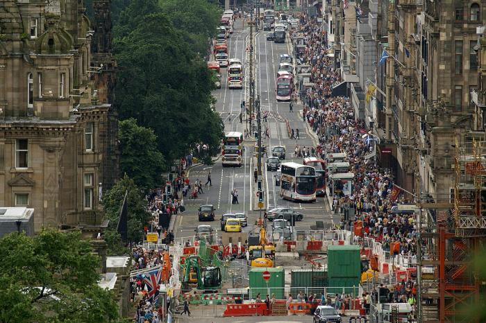 Интересная деталь: с апреля 2012 года в Эдинбурге начали действовать выделенные полосы для общественного транспорта. Для остальных участников движения свободное пространство сократилось до одной полосы и, с учетом всего вышеперечисленного да плюс наплыв посетителей на фестиваль, движение стало напоминать московский трафик на бульварах в час пик.