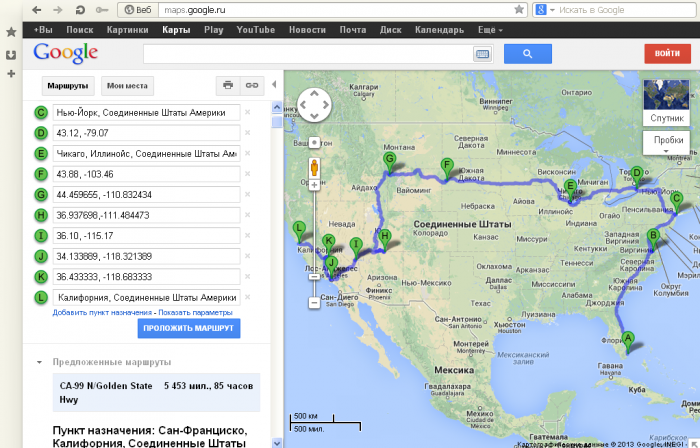 Маршрут был как обычно проложен через: maps.google.ru/