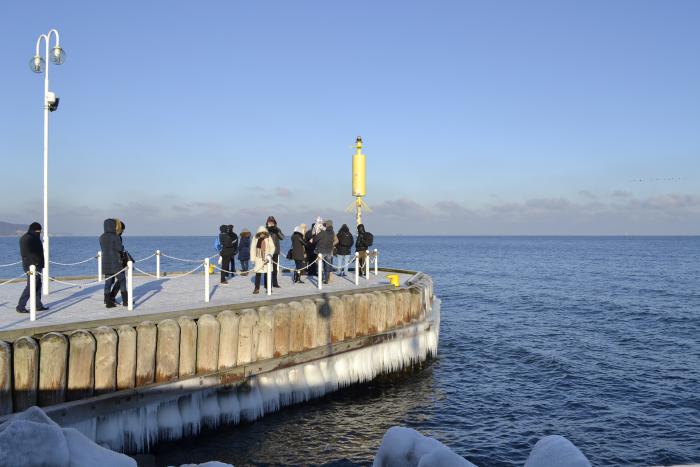 Мы гуляли по побережью и наслаждались зимним морем, свежим морозным воздухом, песчаными пляжами. Да, это было красиво. Погода нам так же сопутствовала. Все дни нашего отдыха стояла хорошая, солнечная погода. На улице температура была в районе -7 — 12.