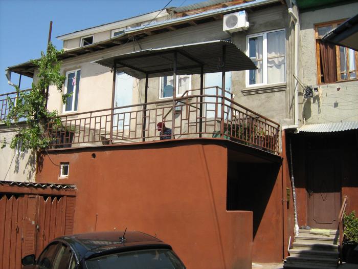 Ещё полчаса езды и «Гармин» приводит нас на улицу Гришашвили, 19, где были забронированы апартаменты в отеле «Мейдани». Это гостевой дом. Т.к. своей парковки у них нет, машина была припаркована на тротуаре. В общий двор выходят номера, а апартаменты это двухэтажная квартира в доме напротив, в старом тбилисском дворике. Квартира со всеми удобствами, но интерьер не блещет.