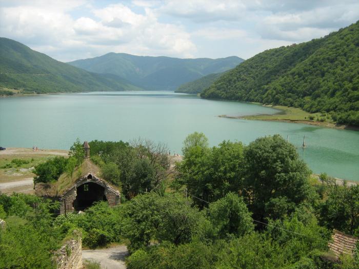 Не много не доезжая до Мцхеты останавливаемся возле замка Ананури на Жинвальском водохранилище. Когда он построен, сказать сложно. Вроде бы одна из башен датируется 13-м веком. Вот эта слева, и имеет хевсурско-чеченский вид. Примерно в 17-м века замок был резиденцией арагвских эриставов. Главной функцией замка было перекрывать долину реки в узком месте. Сейчас от замка осталась только цитадель. А это остатки старой церкви. А здесь не постесняюсь в выражении. Это же какими скотами нужно быть, что бы на фресках переживших века накорябать свои поганые имена.